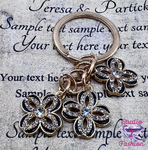 Carry a little bit of luck and a lot of style with you wherever you go with our Good Fortune Keychain. This beautiful, gold-toned accessory features three dazzling four-leaf clover charms, each intricately designed with a polished black enamel center and sparkling rhinestones.