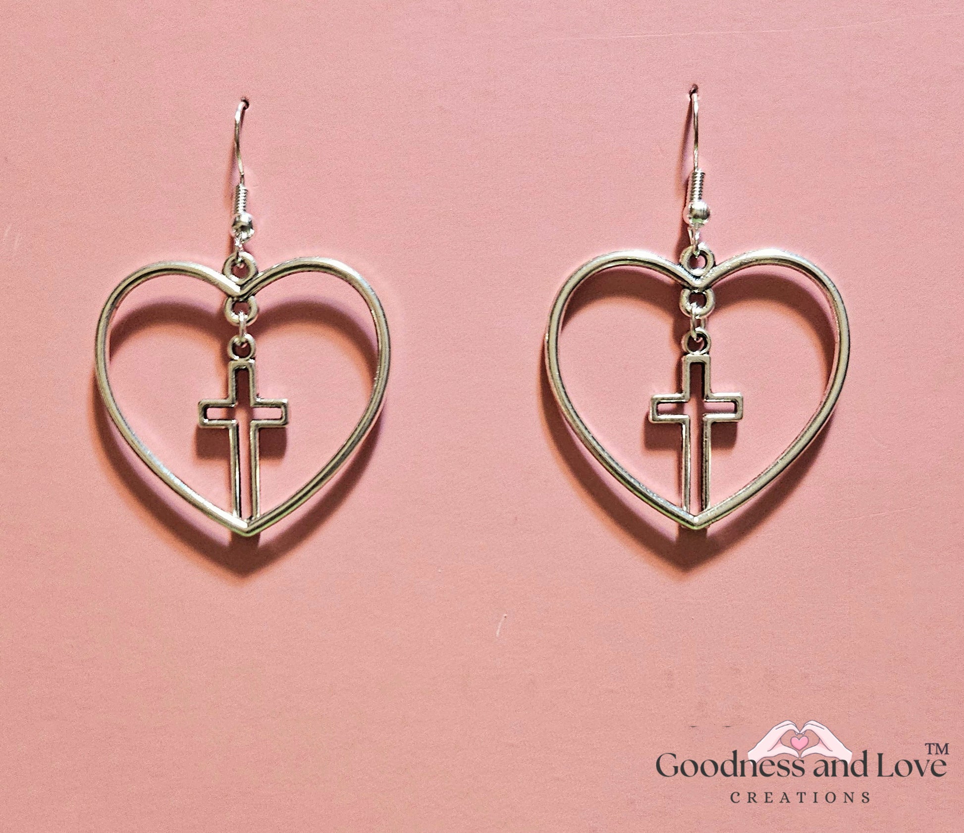 Embrace a beautiful expression of faith and love with these unique heart and cross earrings. Each earring features a delicate, open-heart design crafted in a sleek silver tone, with a gracefully suspended cross nestled within. Their minimalist yet impactful design makes them versatile enough for everyday wear, adding a meaningful touch to any ensemble.