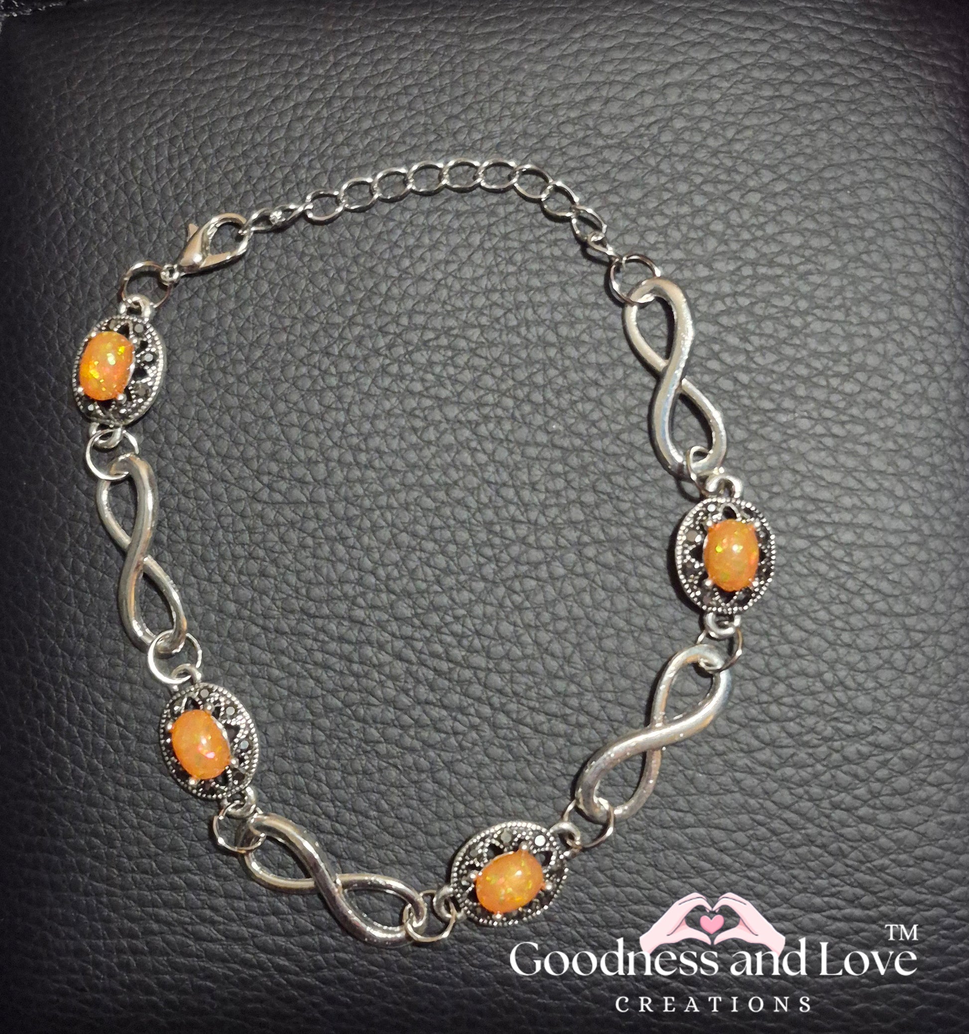 Are you looking for a piece of jewelry that truly captures timeless beauty and enduring connection? This beautifully handcrafted bracelet blends symbolic design with mesmerizing color. Give the gift of forever. This bracelet is an ideal way to express lasting devotion to a loved one—or treat yourself to a piece of jewelry that serves as a beautiful daily reminder of your own inner strength. It measures 9".
