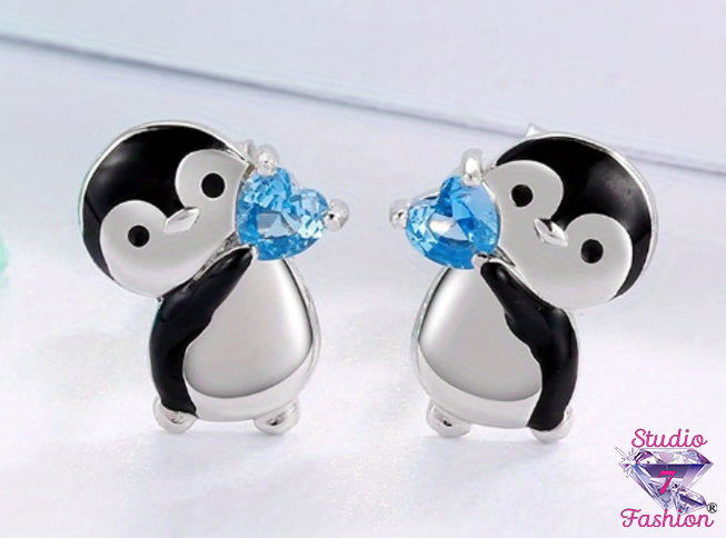 These adorable Penguin Love Stud Earrings are a charming way to express your playful side! Featuring a pair of sweet penguins, each holding a shimmering, heart-shaped blue rhinestone, these earrings are perfect for anyone who loves cute and unique jewelry. They make a fantastic gift for a loved one or a delightful treat for yourself. Add a touch of whimsy and sparkle to your day with these lovable little penguins!