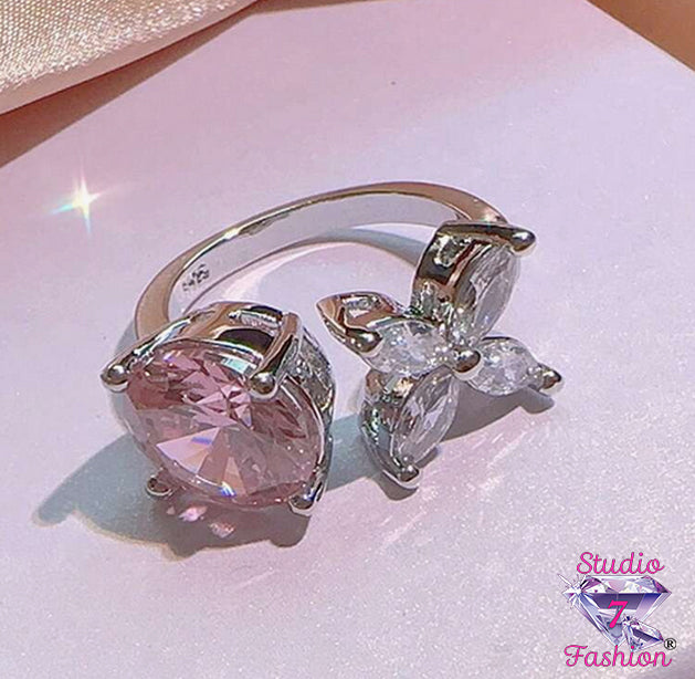 This captivating jewelry collection features a delicate necklace, matching earrings and ring. Each designed to enchant with dazzling sparkle and a touch of romantic charm. Perfect for adding a soft pop of color and brilliant shimmer to any outfit, from a daytime event to an evening affair. The necklace chain measures 20" and the ring is size 7. The earrings are 0.5"