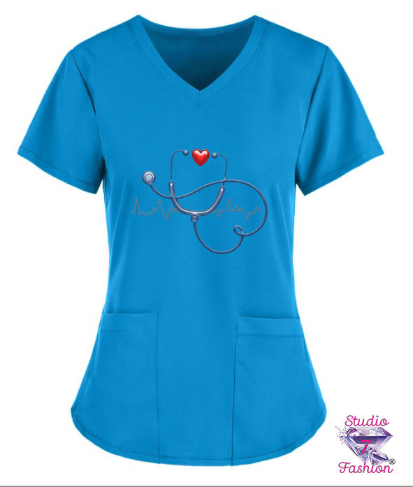 Ideal for healthcare professionals, this shirt combines functionality with a playful twist.